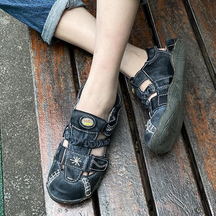 TMA EYES Hand Stitching Leather and Washed PU Leather Flat Women's Shoes with Plus Size