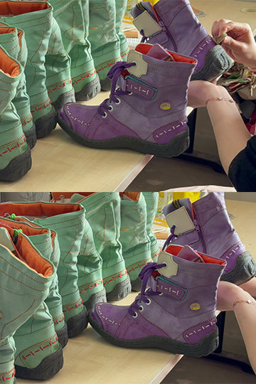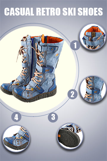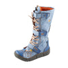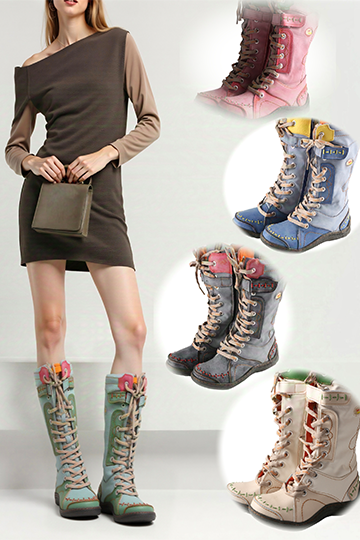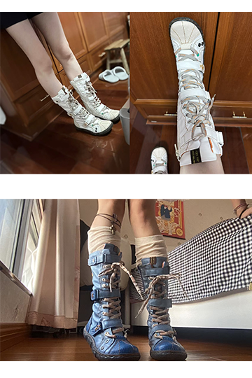 TMA EYES Long Washed Contrast-Stitch Lace Eyes Side Zipper Women's Boots