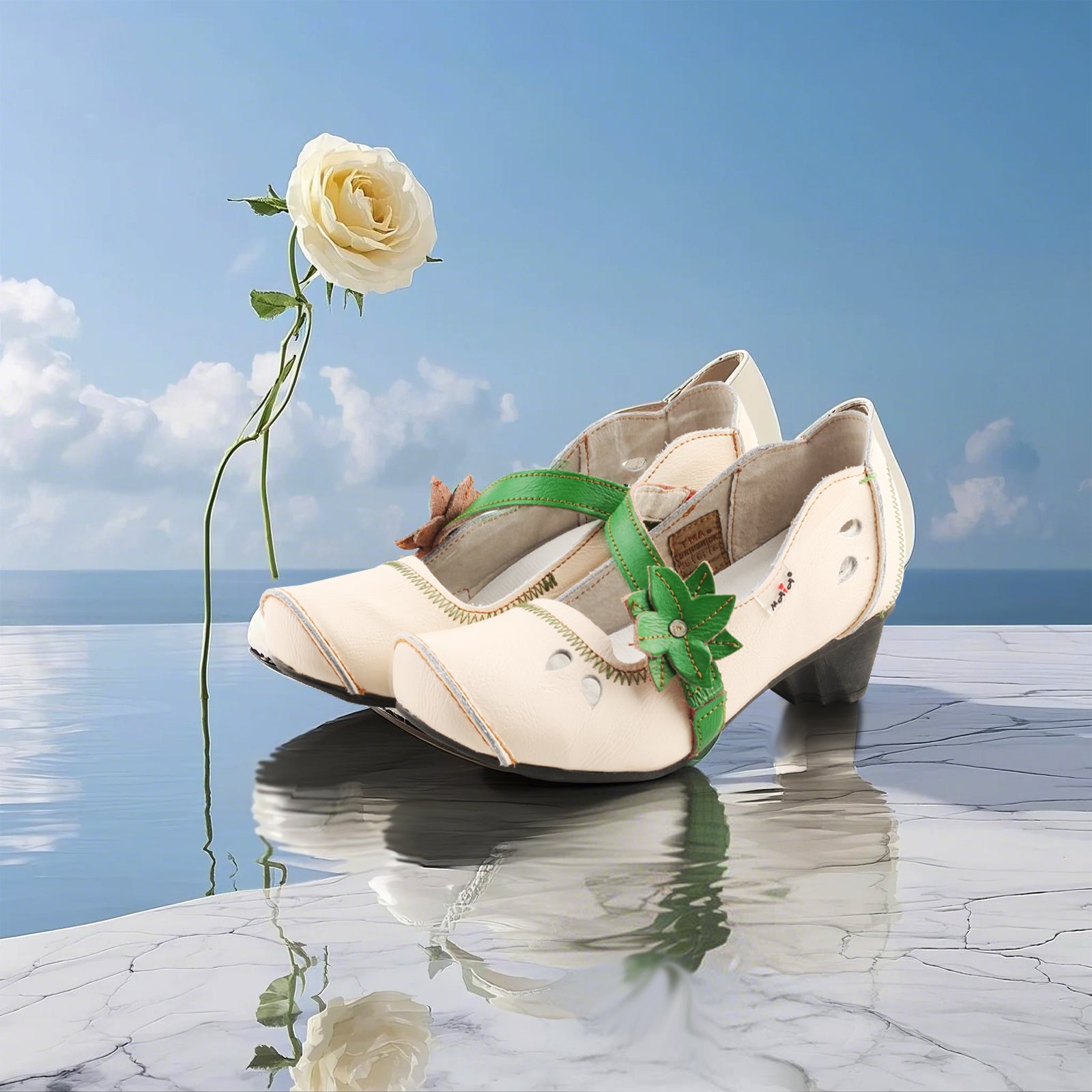 TMA EYES & MAiA Unique Hollow Raised Toe Witch Style Women's Low Heel Thick Heel Leather Shoes