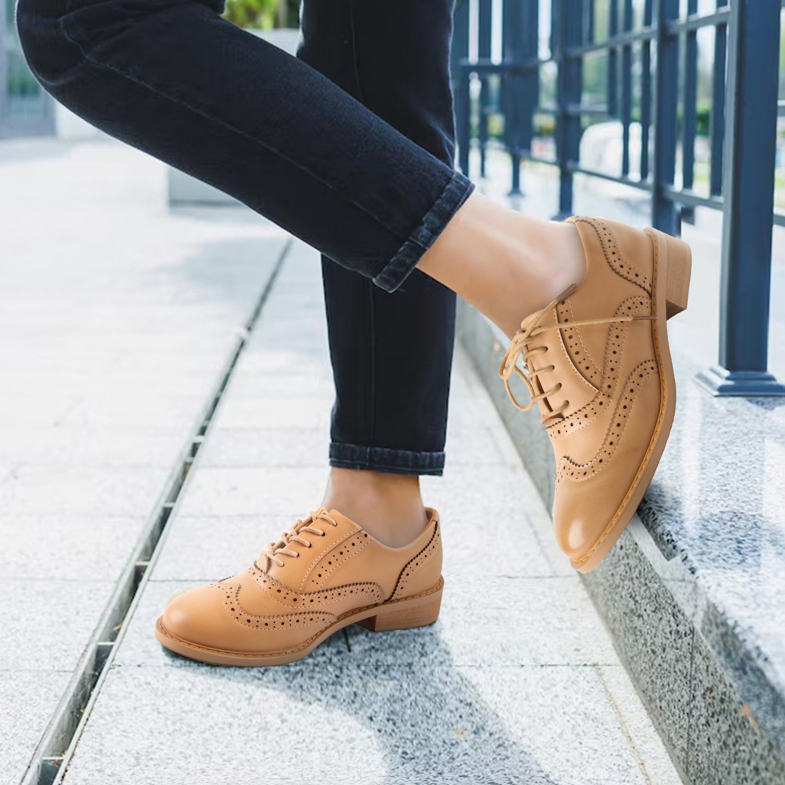 TMA EYES Baroque Retro carved British Style Lace-up Oxford Women's Casual Leather Shoes