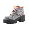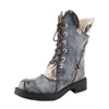 TMA EYES New Women's Thick Heel Mid-calf Irregular Splicing Boots, Fashionable Lace-up and Side zipper Martin formal Boots