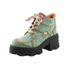 TMA EYES Women's Genuine Leather Hand-stitched Stitching Woven Top Style Zipper Lace-up Martin Boots