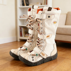 The TMA EYES ankle boots feature a dual closure design for maximum convenience and versatility. With both side zippers and lace-up closures, you can slip these boots on quickly when you’re in a hurry or lace them up securely for a more tailored fit. The combination of zippers and laces gives you the flexibility to adjust the fit as needed, whether you're wearing thicker socks in colder weather or keeping it light in warmer months.