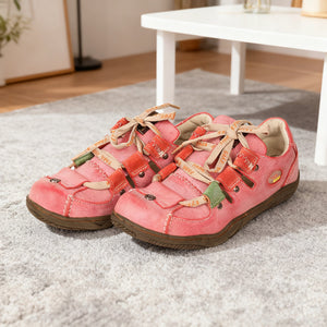 These shoes feature a one - of - a - kind orange leather upper with cool stitching details. The chunky black soles not only add height but also give a bold, fashion - forward look. It's a design that blends vintage vibes with modern trends, making you the center of attention wherever you go.